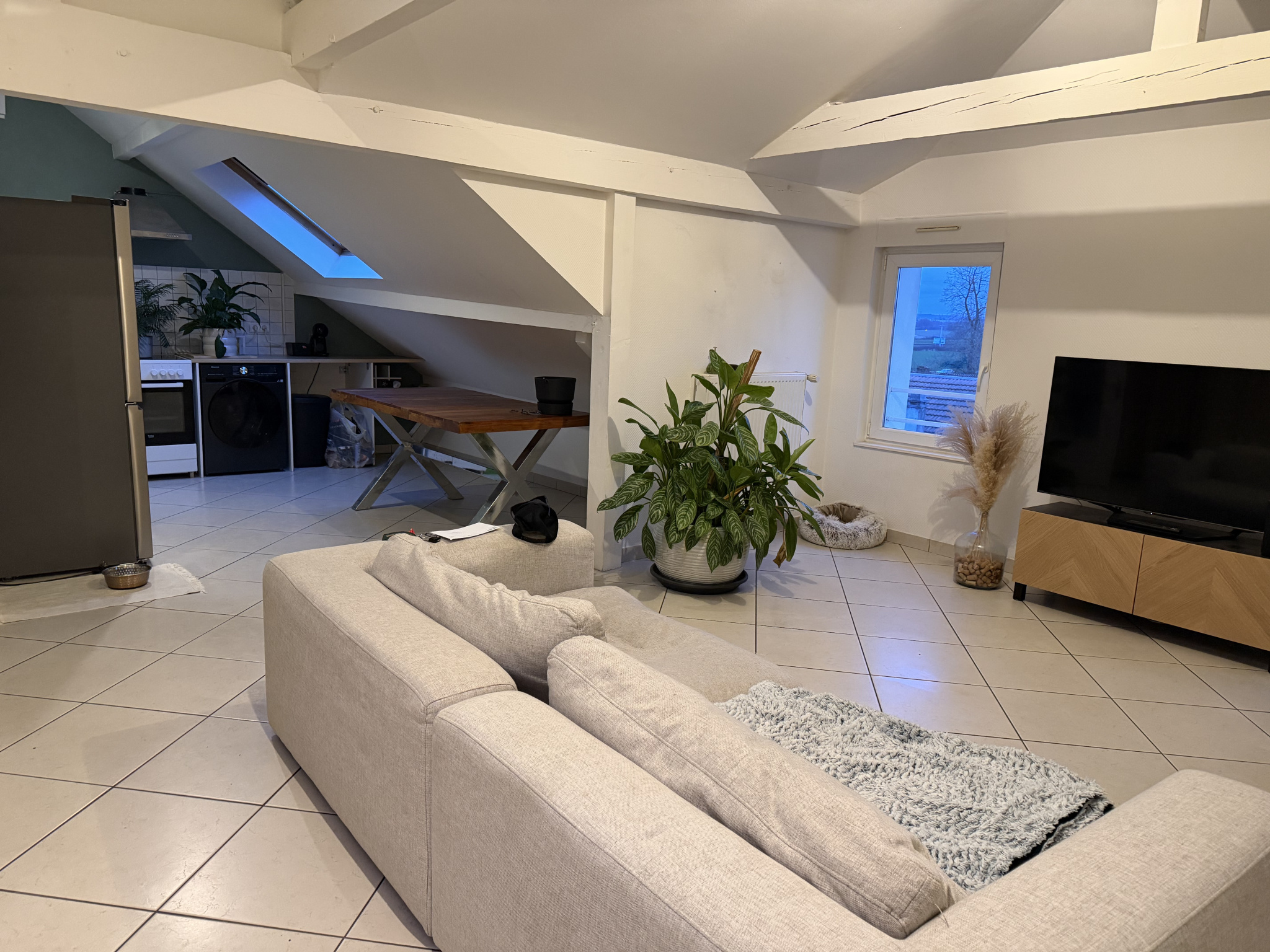 Talange, disponible au 1er avril 2026, très bel F3 de 66 m². Situé au 3ème et dernière étage sans ascenseur d'un petit immeuble bien tenu, cet appartement se compose d'une entrée, un salon, une cuisine ouverte sur salon-séjour, deux chambres, une salle de bains, un WC séparé. En annexe: une cave. Double vitrage, chauffage individuel gaz. Loyer : 680,00€ charges comprises (dont provision mensuelle sur charges récupérable : 35,00€ ). Dépôt de garantie : 645,00€. Détail des charges: T.O.M, entretien de chaudière et électricité des communs. Honoraires à la charge du locataire: 645,00 € (comprenant 528,00 € pour la constitution du dossier, visites, rédaction et 117,00 € pour l'état des lieux). « Les informations sur les risques naturels et/ou technologiques auxquels ce bien est exposé sont disponibles sur le site Géorisques : www.georisques.gouv.fr »