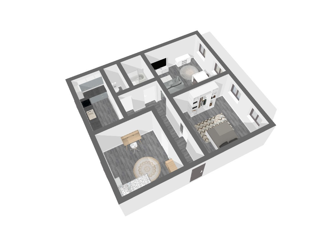 Disponinble au 22.12.2025. Appartement F3 de 70 m² situé au deuxième étage d'une petite copropriété. Il est composé d'une entrée, une cuisine équipée, un séjour, deux chambres, une salle de bains, un WC indépendant, une cave et un garage. Chauffage individuel au gaz, double vitrage PVC.
