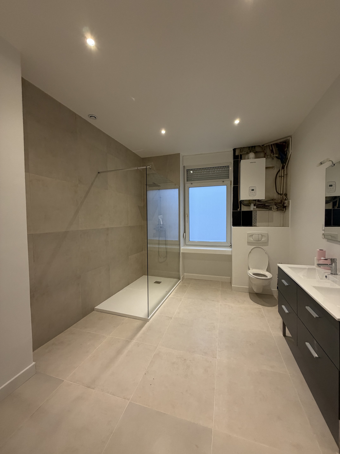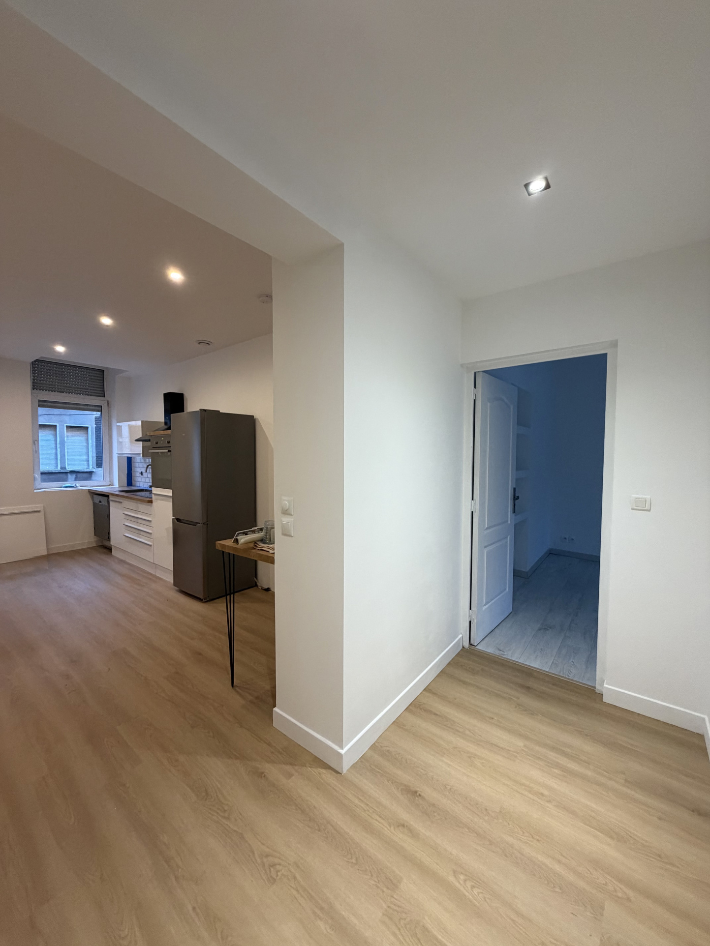Algrange, très bel appartement F3 de 68 m² entièrement rénové disponible immédiatement. L'appartement se situe au 2ème et dernier étage sans ascenseur et se compose d'une entrée, cuisine equipée ouverte sur séjour, deux chambres, une salle d'eau avec WC. En annexe : Un garage et une cave commune. Charges : Taxe OM, élécricité des communs et entretien de la chaudière. Loyer : 730,00 € charges comprises (dont provision mensuelle sur charges récupérables : 50 euros). Dépot de garantie : 730 euros. Honoraires à la charge du locataire : 680 euros (comprenant 544 euros pour la constitution du dossier, visites, rédaction et 136 euros pour l'état des lieux). « Les informations sur les risques naturels et/ou technologiques auxquels ce bien est exposé sont disponibles sur le site Géorisques : www.georisques.gouv.fr »